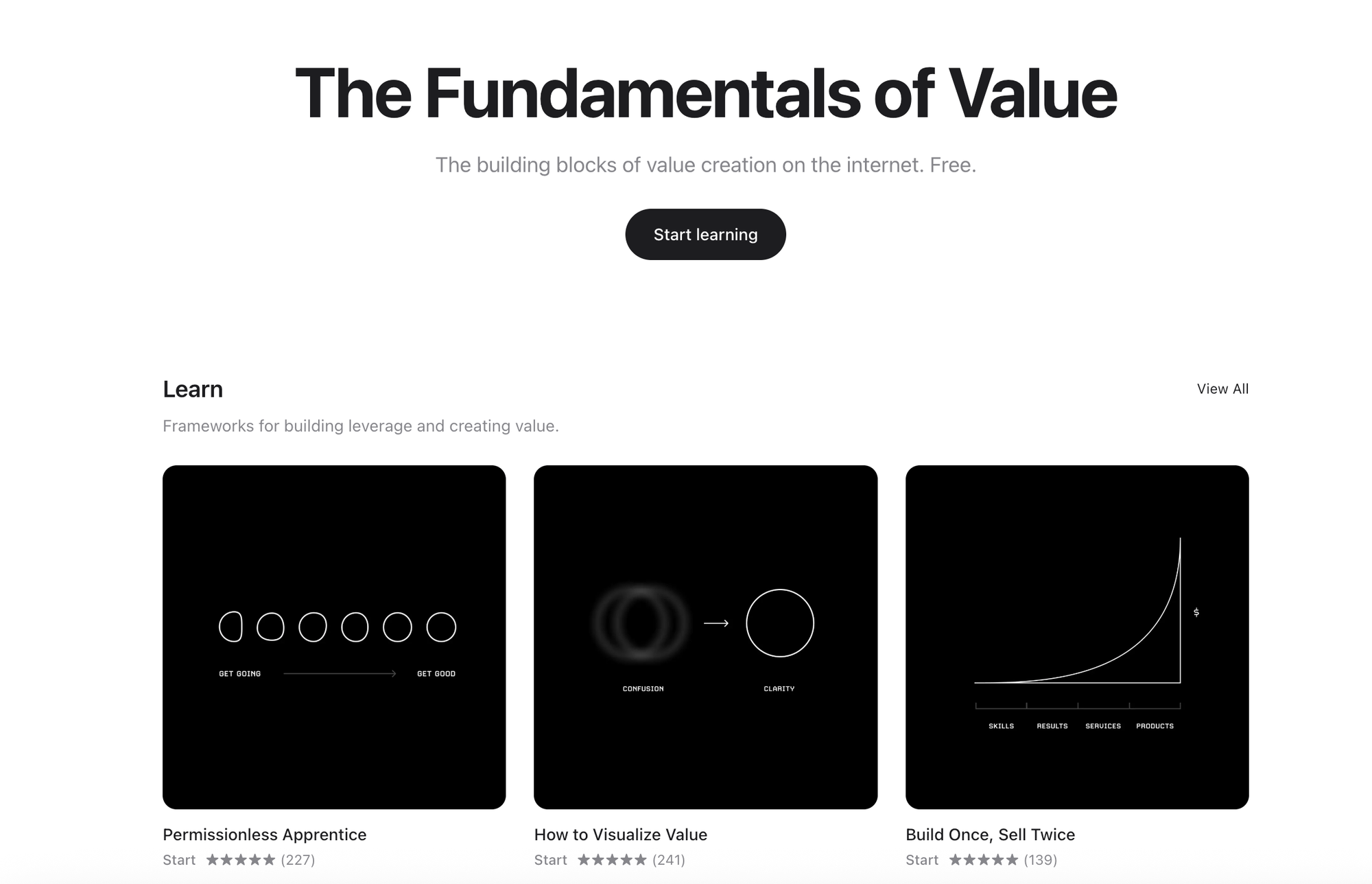 很多年后,这个人做出了 Visualize Value。很多人认识他,是因为那些黑白极简的图、那些关于 leverage、value creation、proof of work 的表达。你今天再看他,很容易把他归类成“个人品牌做得很好的人”“很会表达的创作者”或者“卖数字产品的人”。